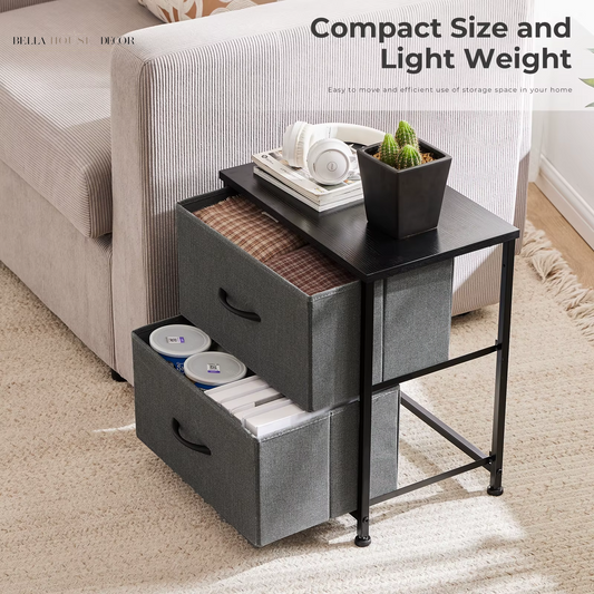 Cabinet for Living Room with 2 Fabric Drawers beside Nightstand Tables Storage Closet Chest Clothes Display of Furniture