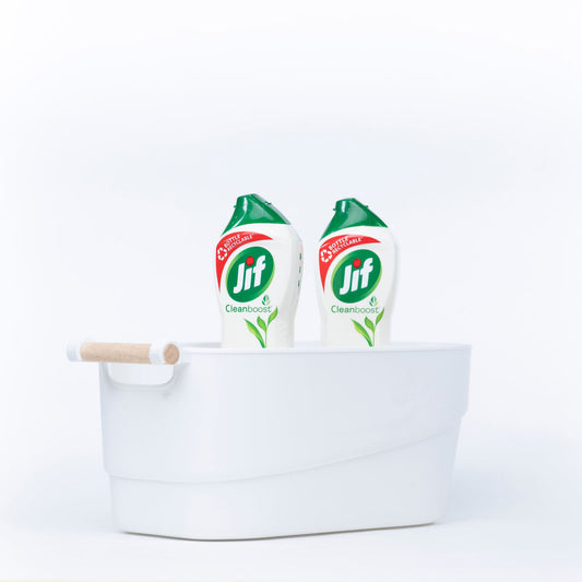 Medium White Storage Tub with Wooden Handle